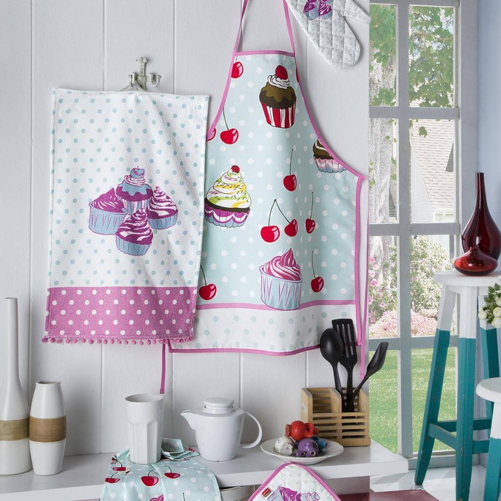 Aryıldız Home Cheries Önlük-Mutfak Eldiveni+Tutkaç+Havlu Set