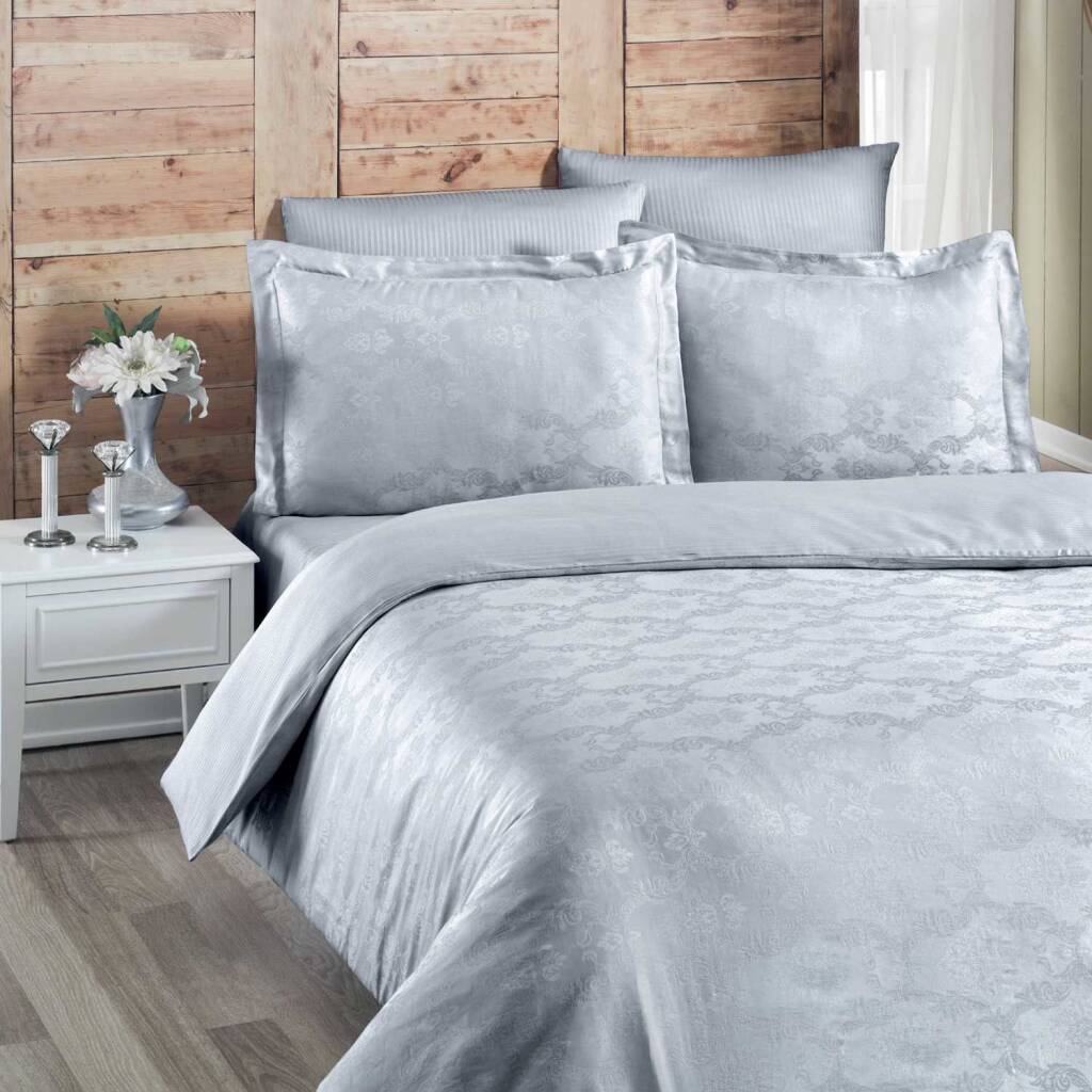 Jakarlı Saten Evgenia Gri Çift Kişilik Nevresim Takımı