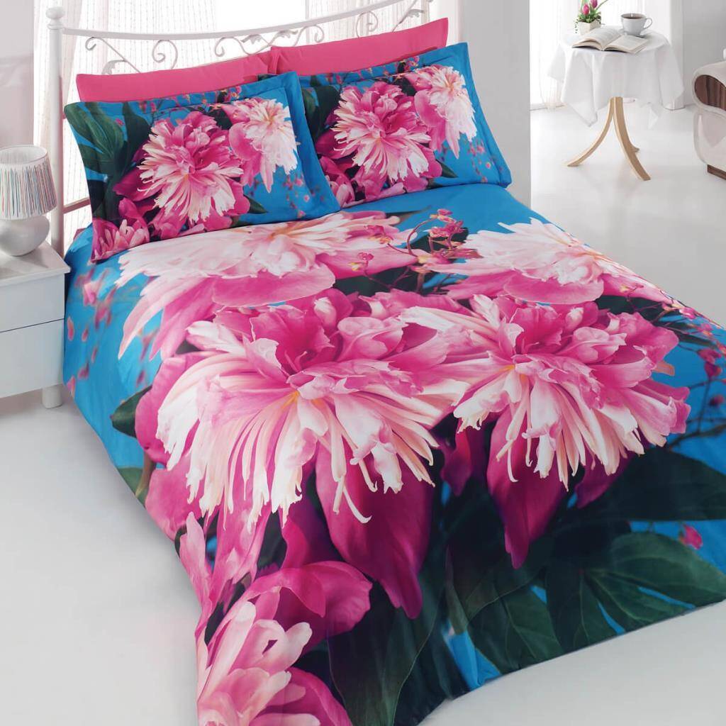 Maxstyle 3D Saten Şakayik Çift Kişilik Nevresim Takımı, zarif şakayık deseniyle yatak odanıza estetik bir hava katacak.