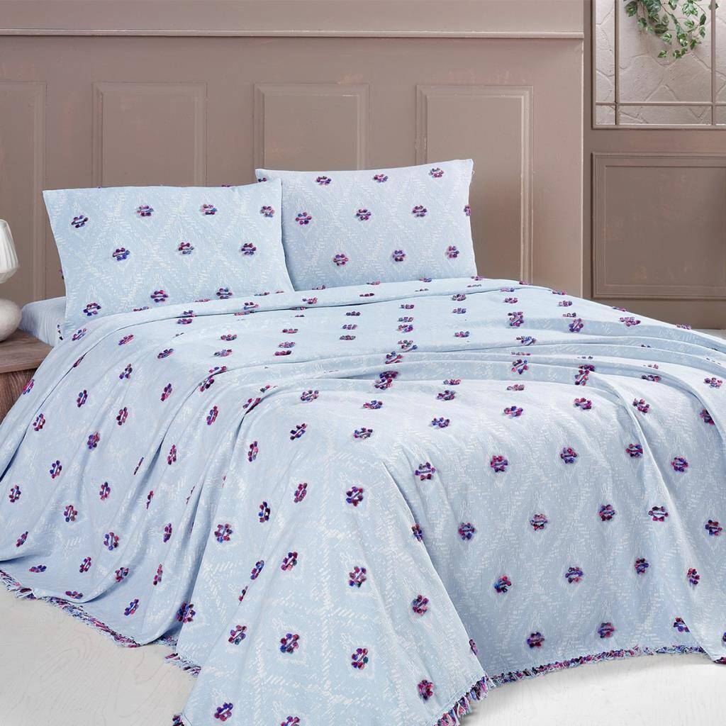 Kolay bakım özelliği sayesinde makinede yıkanabilir ve kurutulabilir. Maxstyle İkat Mavi Yatak Örtüsü, hem şıklığı hem de pratikliği bir arada sunar.