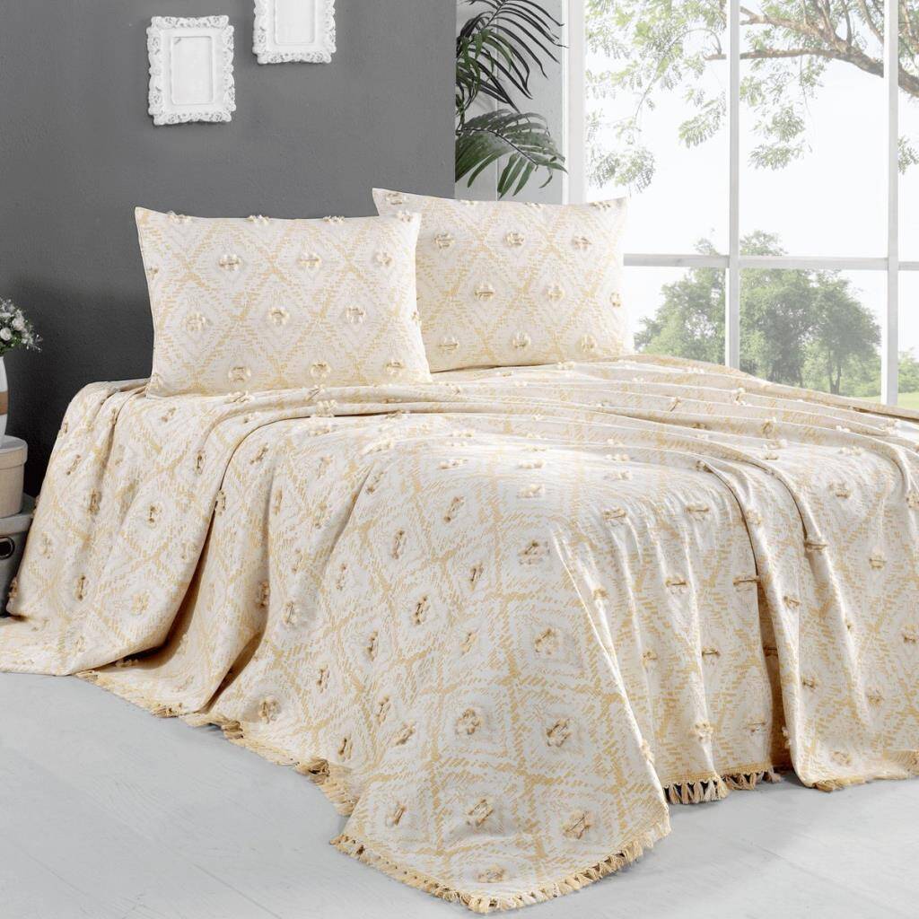 Kolay bakım özelliği sayesinde makinede yıkanabilir ve kurutulabilir. Maxstyle İkat Sarı Yatak Örtüsü, hem stil sahibi hem de pratik bir tercih arayanlar için ideal bir seçenektir.