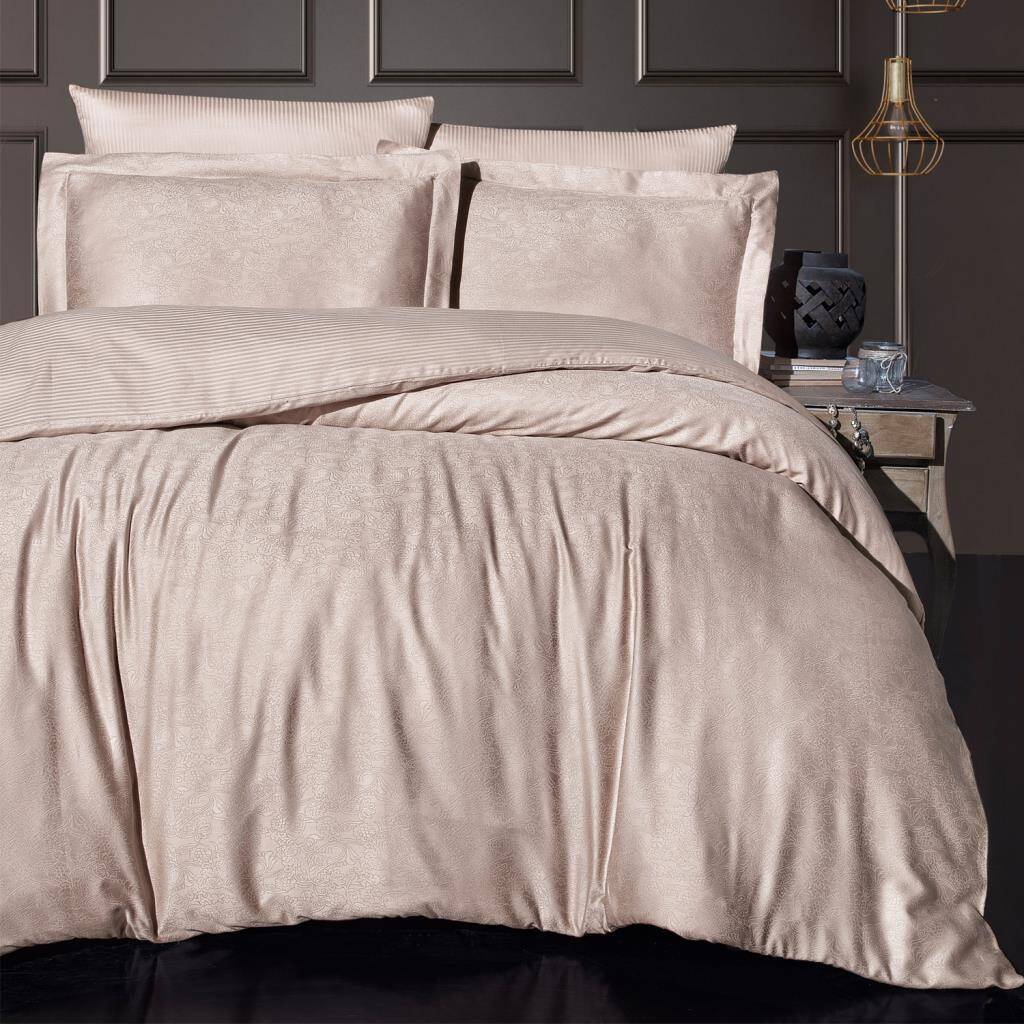 Maxstyle Jakarlı Saten Carmina Bej Çift Kişilik Nevresim