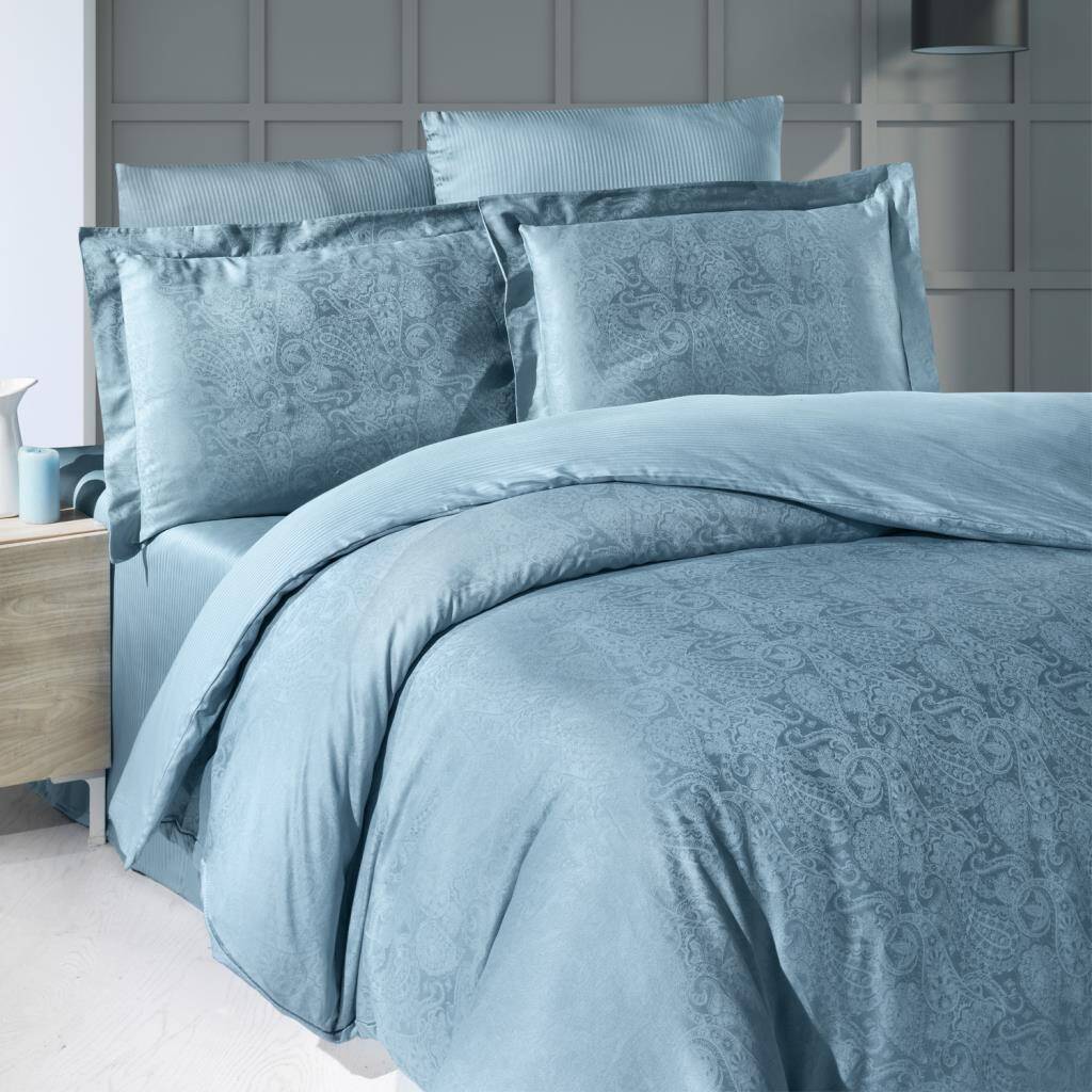 Maxstyle Jakarlı Saten Reyka Turkuaz Çift Kişilik Nevresim Takımı