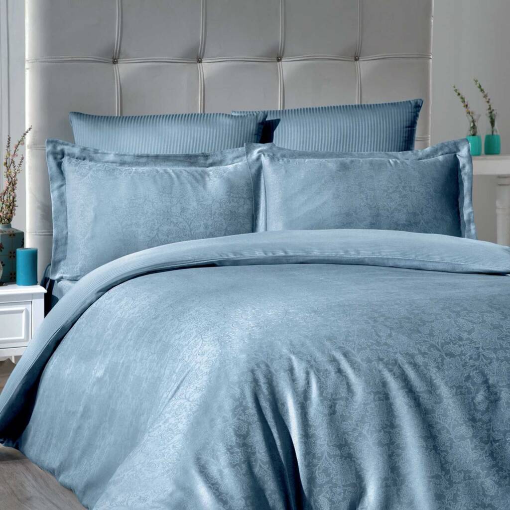 Zarafet ve Konforun Buluştuğu Jakarlı Saten Reyka Petrol Double Nevresim Takımı
