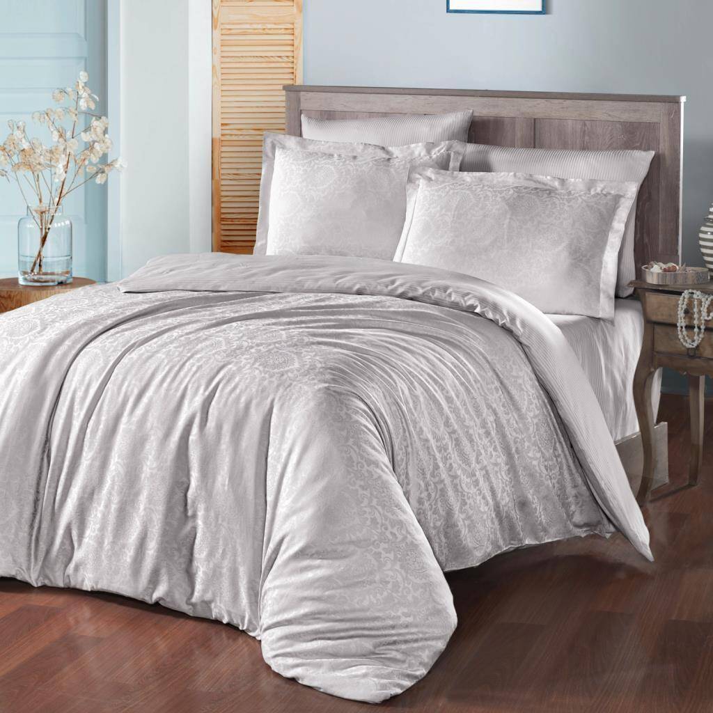 Maxstyle Jakarlı Saten Soho Taş Çift Kişilik Nevresim Takımı, yatak odanızı modern ve zarif bir görünüme kavuşturur.