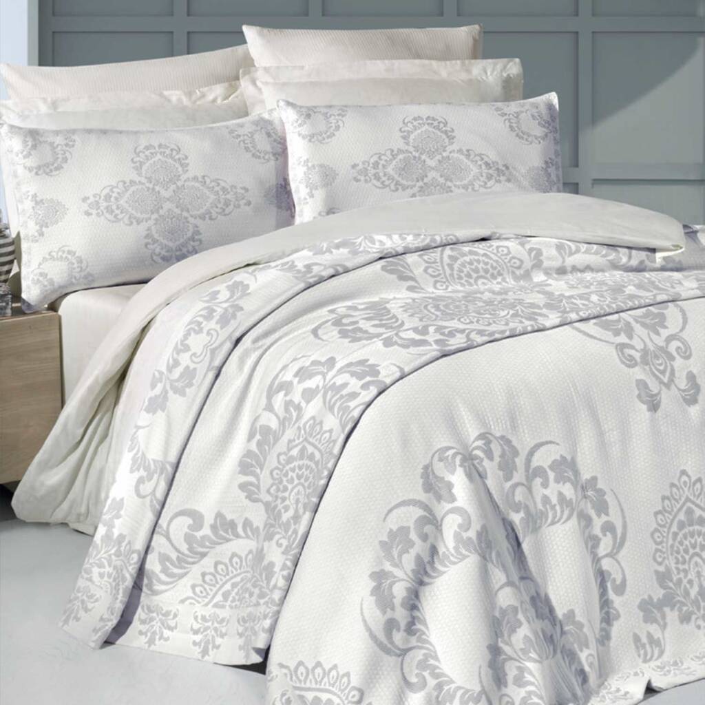 Maxstyle Jakarlı Soho Taş Yatak Örtüsü, yatak odanıza modern bir dokunuş sağlar. 250x260 cm boyutunda geniş bir yatak örtüsü ve standart 50x70 cm ölçülerinde 2 adet yastık kılıfıyla birlikte gelir. Bu jakarlı yatak örtüsü ve yastık kılıfları, yüksek kaliteli malzeme kullanılarak üretilmiştir ve uzun ömürlü kullanım sağlar. Şimdi yatağınızı Maxstyle kalitesiyle güzelleştirin!