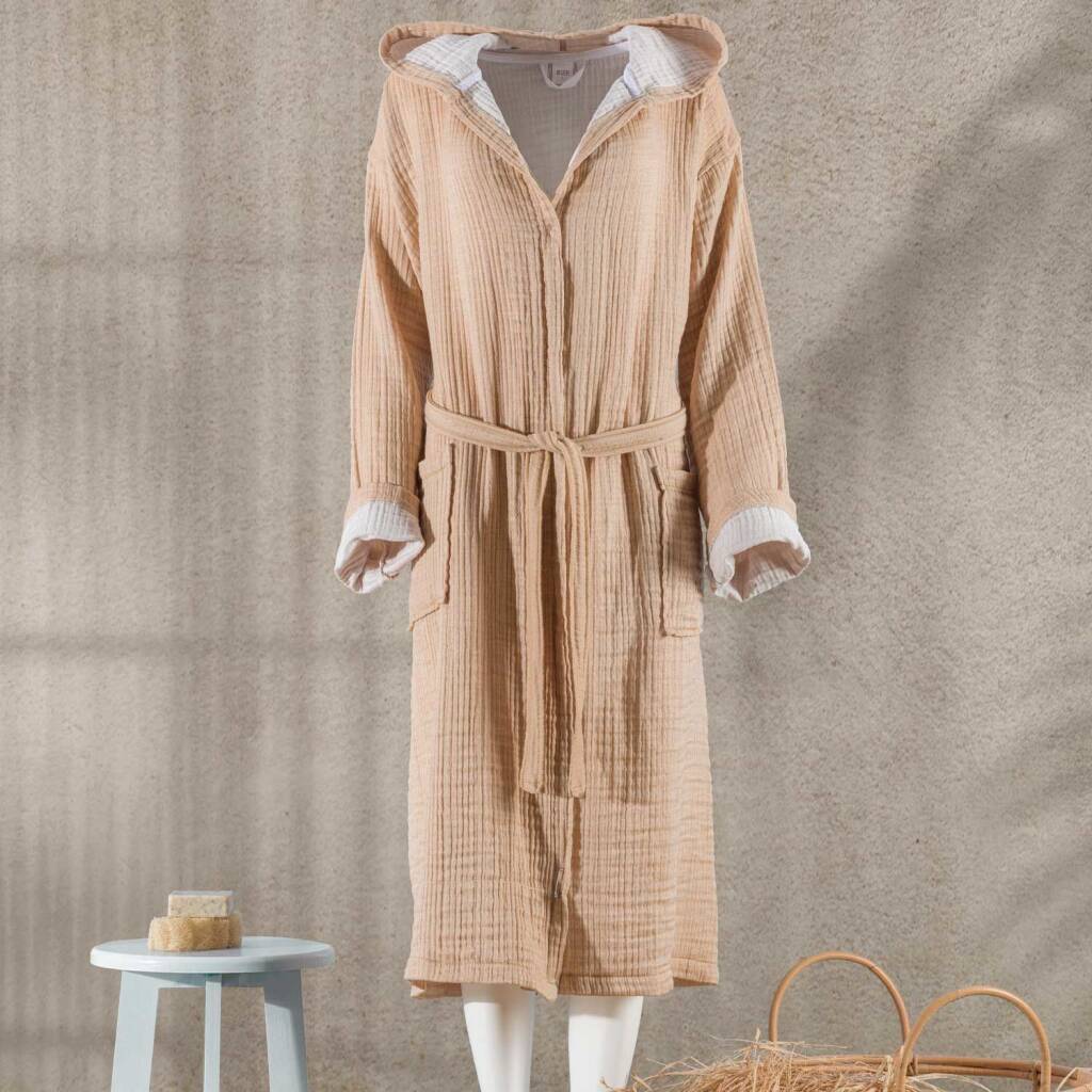 Maxstyle Müslin Bej Kadın ve Erkek Bornoz