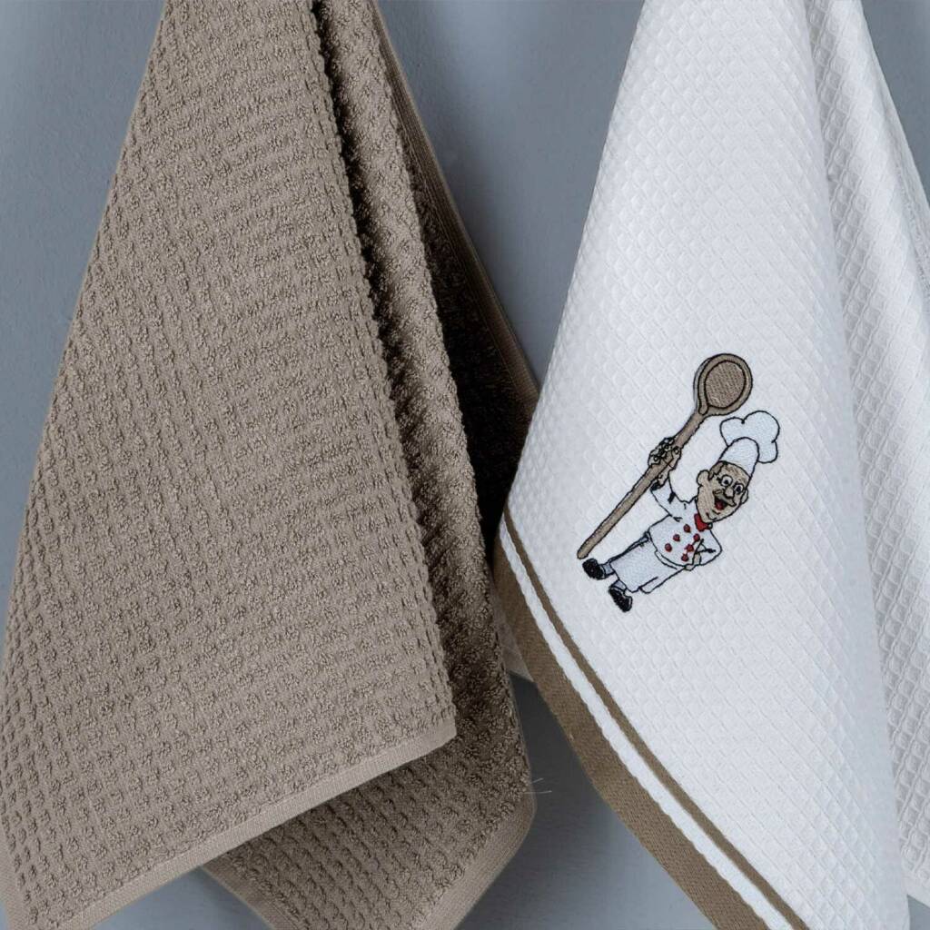 Maxstyle Pamuk Mutfak Havlusu Aşçi 2'Li Beyaz-Bej 40x60