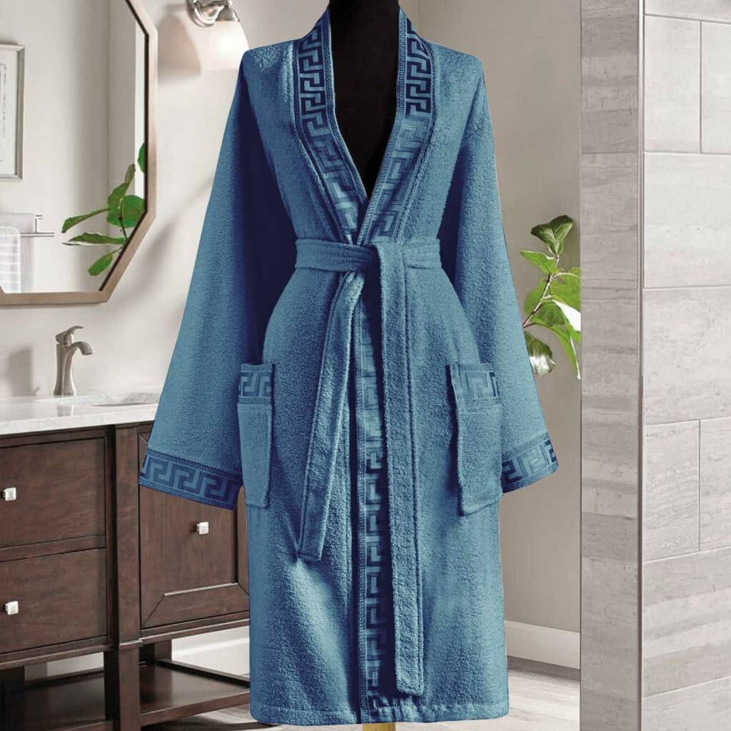 Maxstyle Versace Erkek Mavi Bornoz, şıklığı ve rahatlığı bir araya getirir. Günlük kullanımınızda size konfor sağlar ve özel tasarımıyla tarzınızı yansıtır.